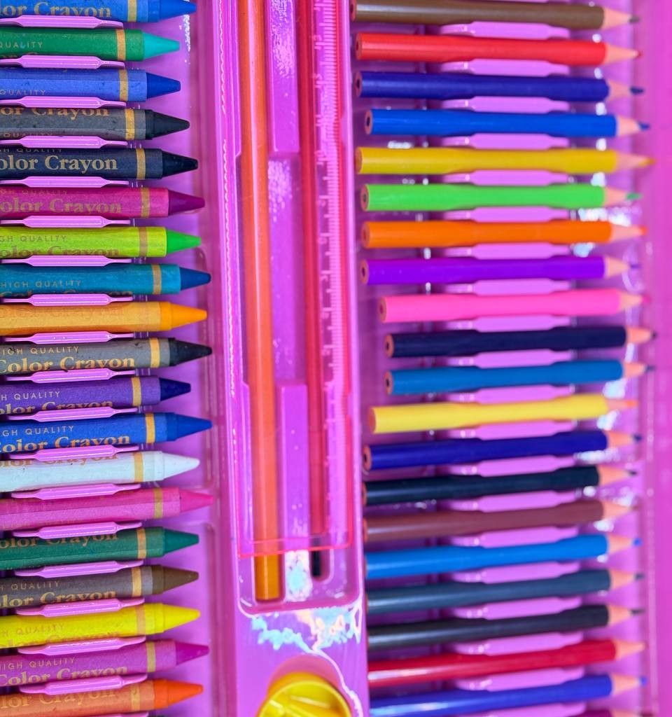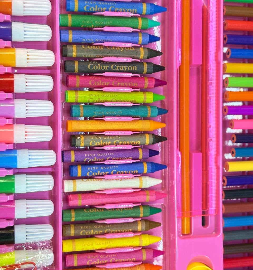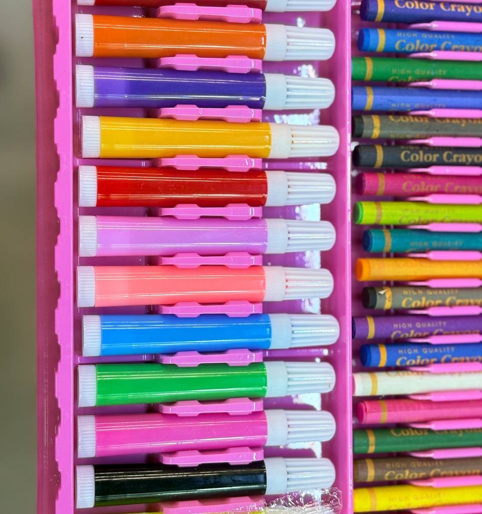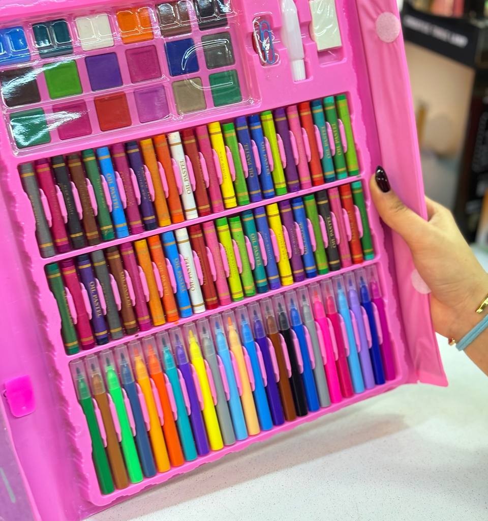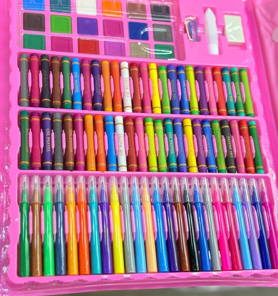 | سایر توضیحات | - دارای 48 عدد پاستل - دارای 24 عدد مداد شمعی- دارای 24 عدد مداد رنگی - دارای 36 عدد ماژیک - دارای تراش- دارای 18 رنگ آبرنگ - دارای پاک کن- دارای گیره نگهدارنده کاغذ- دارای چسب- دارای خط کش، قلمو و مداد مشکی- دارای کاغذ - دارای کیف حمل تاشو- دارای گیره نگهدارنده کاغذ |